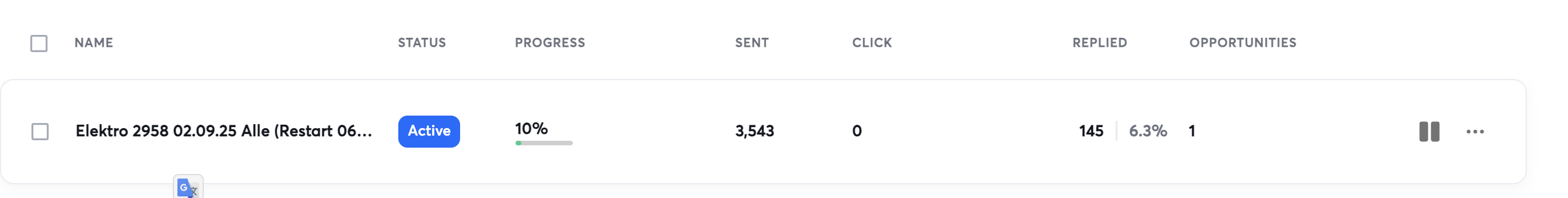 3,543 sent • 145 replies • 6.3% rate • Active now